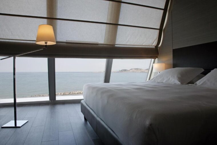 SeePort Hotel to elegancki obiekt położony tuż nad morzem, z widokiem na Adriatyk i pobliski port. Jego architektura łączy nowoczesność z klasyczną elegancją, a wnętrza wyróżniają się minimalistycznym designem i jasnymi tonami. Z hotelu można w kilka minut dojść do centrum miasta, portu i głównych atrakcji Ankony. Goście cenią to miejsce za znakomitą kuchnię w hotelowej restauracji, taras widokowy oraz spokojną atmosferę. Cena za nocleg w pokoju dwuosobowym zaczyna się od około 150 euro.