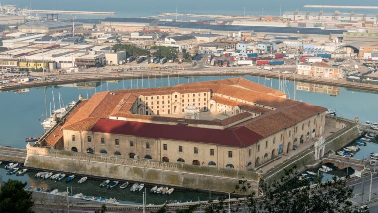 Mole Vanvitelliana, znana też jako Lazzaretto di Ancona, została zaprojektowana przez Luigiego Vanvitellego w 1733 roku. Pięciokątna forteca na wodzie służyła pierwotnie jako izolatorium dla marynarzy powracających z odległych podróży. W XIX wieku pełniła funkcję magazynu, a dziś mieści muzeum, centrum sztuki współczesnej i wystawy poświęcone Leonardo da Vinci. Z tarasów budowli rozciąga się malowniczy widok na port.