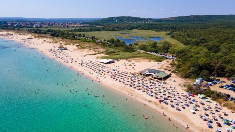 Złote Piaski znajdują się w północnej części bułgarskiego wybrzeża, w otoczeniu zielonych wzgórz i Parku Przyrodniczego Złote Piaski. Ten obszar cechuje się nieco łagodniejszym klimatem – letnie temperatury oscylują wokół 28–30 stopni Celsjusza, a powiew znad morza zapewnia przyjemną bryzę nawet w szczycie sezonu.